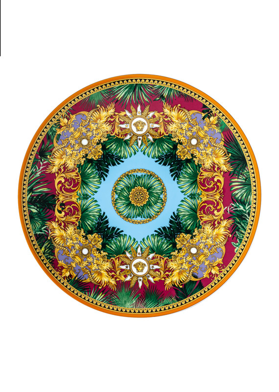 This exquisite luxury porcelain showplate from Versace’s Jungle Animalier collection features a vibrant multicolor design and generous size, making it the perfect statement piece for elegant dining.